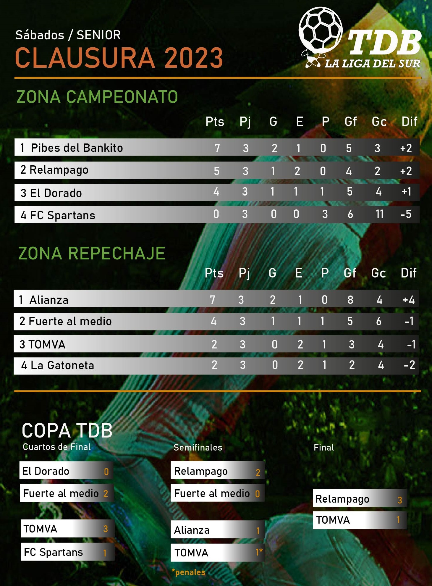 El 2do de la zona Campeonato y el 1ero de la Zona Repechaje pasan a semifinales de la Copa TDB.