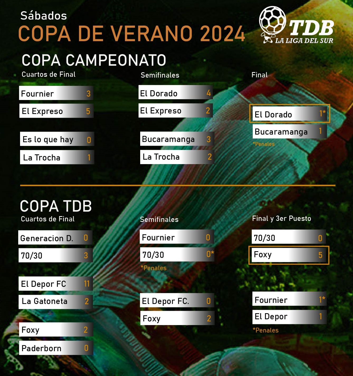 -Los tres ganadores de esta instancia, más el mejor perdedor de Cuartos de Copa Campeonato pasará a semis de Copa TDB.